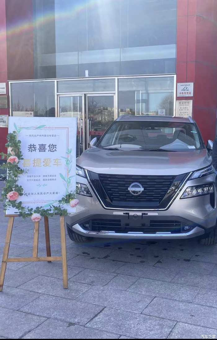 时光荏苒,我的东风日产2023款 e-power超混双电机四驱至尊版奇骏已经提车快三个月了,是时候完成提车作业了!随着外孙的成长,我那已经服役了8年,跑了10.3万公里的座驾—大众迈腾,已经不能满足我们日常出行的需求,我那可心的“小棉袄”承诺由她出资给我换辆新车,在女儿极力的撺掇下萌生了换车的念头,我的理想价位在20万上下。选车的过程中我首先排除的是纯电动汽车,主要考虑的是续航焦虑和大电池的安全性,以及北方地区冬季对电池的损耗。插电混动也不在我的选择之列,我居住的小区车位不让自己按充电桩。在20万左右的油车和混动汽车中第一个被排除的就是德系车,因为自2009年我拥有了第一辆代步车奇瑞QQ后,受爱人在大众4S店工作的影响,之后的三辆车全都是大众系列。有句话说的好:买车的时候看优点,开车的时候看缺点。开了十几年的大众车,脑子里充斥的都是缺点:外形单一、内饰简单、吃细粮、烧机油、配置低、座椅硬、保养成本高、小毛病多等等。美系车耗油高,加上国际形势影响也被排除,可选的车型只剩下韩系和日系。“汽车之家”网站的车型对比功能能够准确的将车型信息呈现出来,这可帮了我很大的忙!经过反复筛选最后剩下的是:韩系车起亚的“狮铂拓界”、日系车本田皓影和日产超混奇骏e-power。“狮铂拓界”因为韩系车的销量持续低迷,4s店陆续关闭而劝退了我,剩下待选的皓影和奇骏这两款车,无论是价格还是配置我都比较中意,接下来的选择令我举棋不定,于是开始搜网页、逛论坛、刷抖音,全方位的探寻这两款车的优缺点。百闻不如一见,最终我还是决定亲自试驾一下这两款车。离我家不远汽车园区里日产和广本4s店紧挨着,这也是我选择这两款车的原因之一。2023年11月18日,我先试驾了超混奇骏e-power,令我惊奇的是试驾专员在我登记信息时,先手机远程控制启动车辆并打开空调、热车……就这个神操作就一下就吸引了我,接下来的试驾更是惊奇不断——车道辅助系统,5种驾驶模式切换,自动驻车,360全景影像,AR实景导航,电车般的静谧性等等配置更令我慨叹不已。受先入为主的影响,试驾本田皓影四驱油车,除了转向辅助和方向盘加热之外,其它方面没有让我觉得心动的地方。于是决定了买超混奇骏e-power。