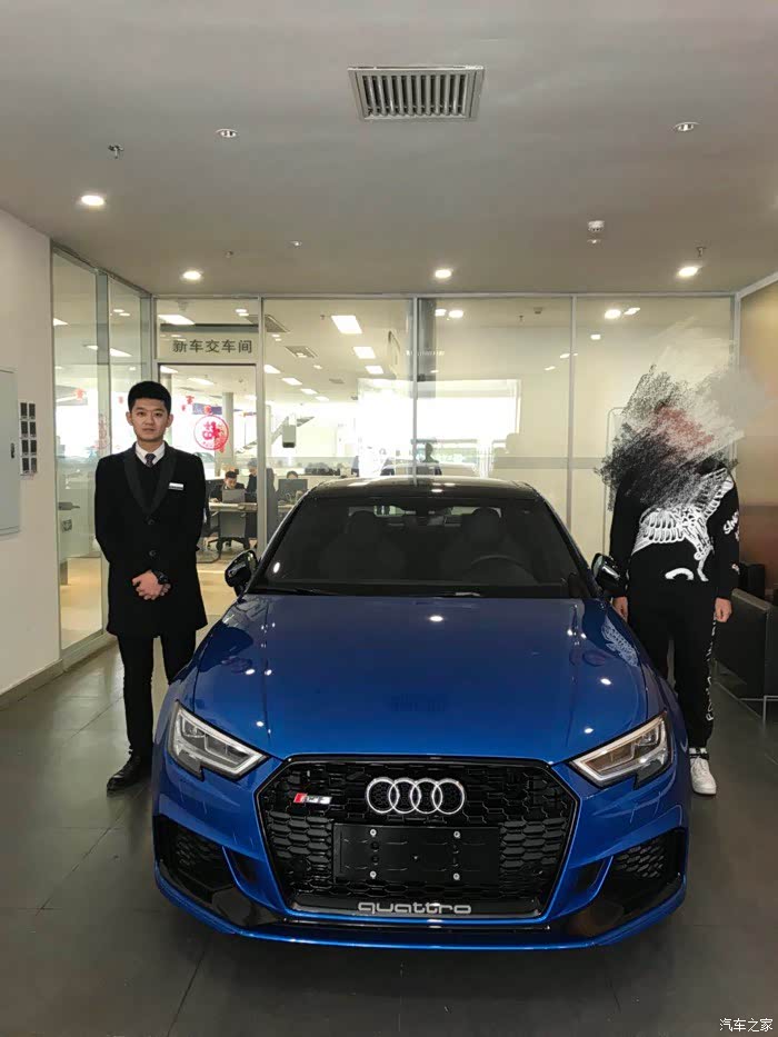 第二天一大早就醒来 吃了当地较有名的313羊庄 随后直奔奥迪4s 再次见RS3 有种说不出来的感觉 与销售小哥谈了一下午 最终52.3W拿下 心里无比激动啦!