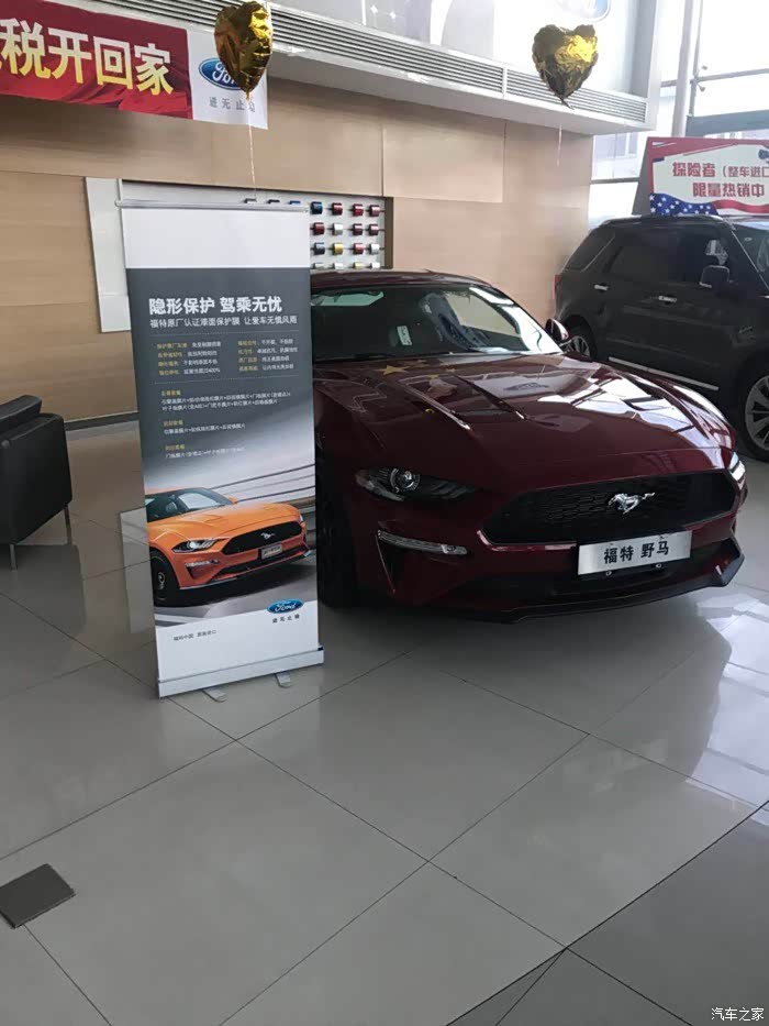离开宝马4s以后 直奔我心心念念的福特4s 因为心里想买的车就是mutang 在这之前我也早就联系到福特的销售 让销售帮忙拍几张现车的照片 有一台全新的灰色野马 一台红色的展车 以下是销售小哥给我发的照片??