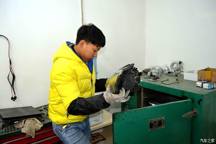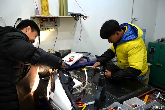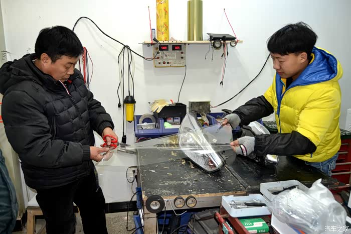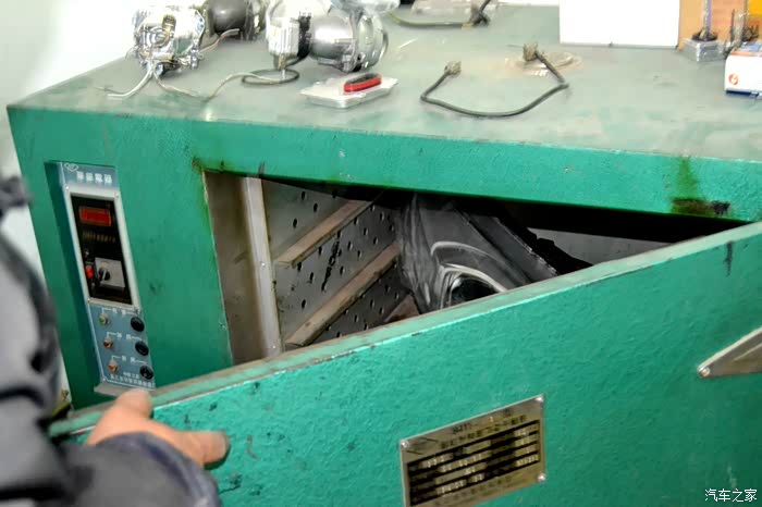 包好的大灯就要进入烤箱进行高温烘烤,软化胶质才能拆开灯罩进行安装操作