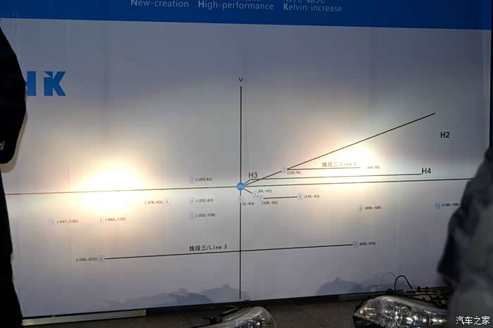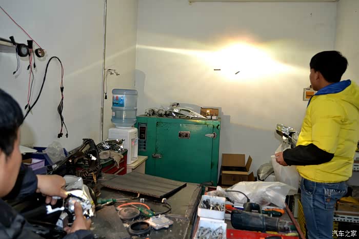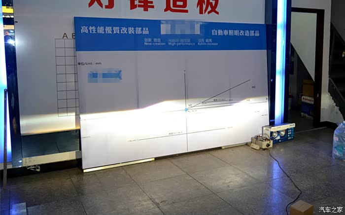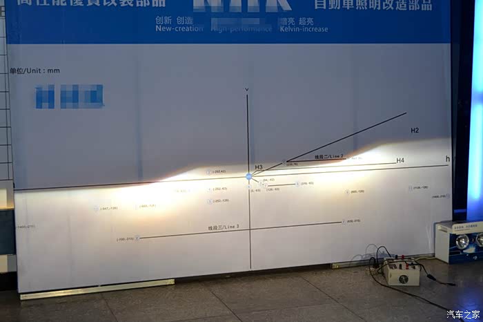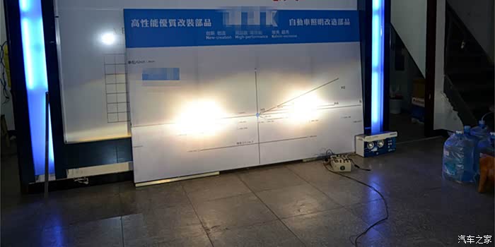 灯光测试,安装透镜之后的氙气大灯产生明显的切线,并且是左边略微低,右边稍高,为的是在保证光线视野好的同时照顾到对方的车流。