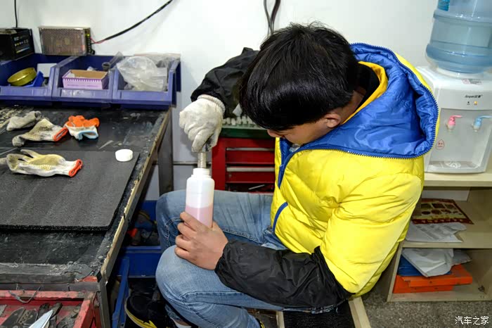 徒弟正在准备开胶水,用来配合灯罩的打开