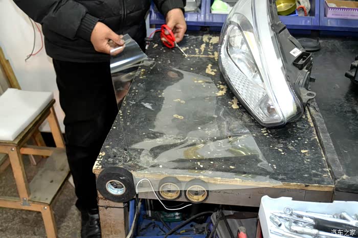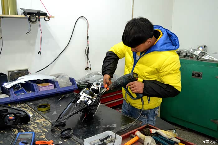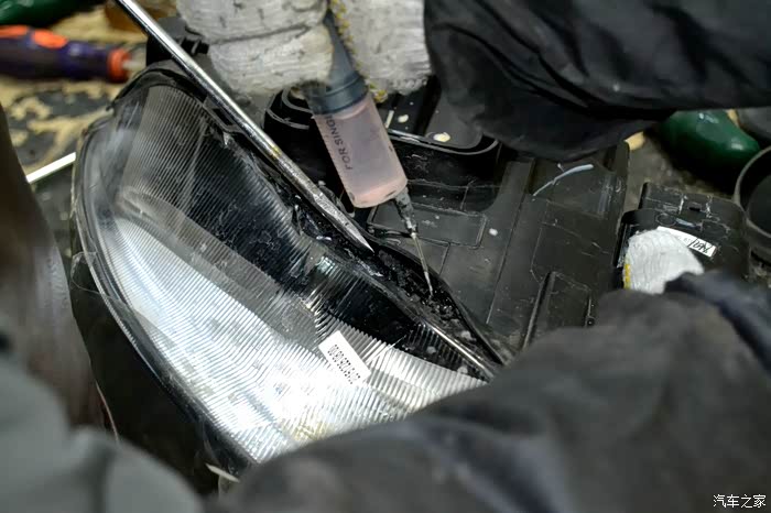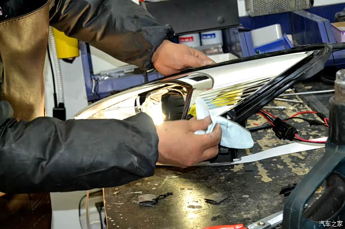 灯光测试完毕,就准备给安装好的大灯封胶