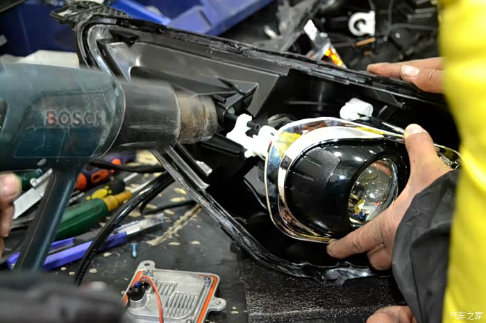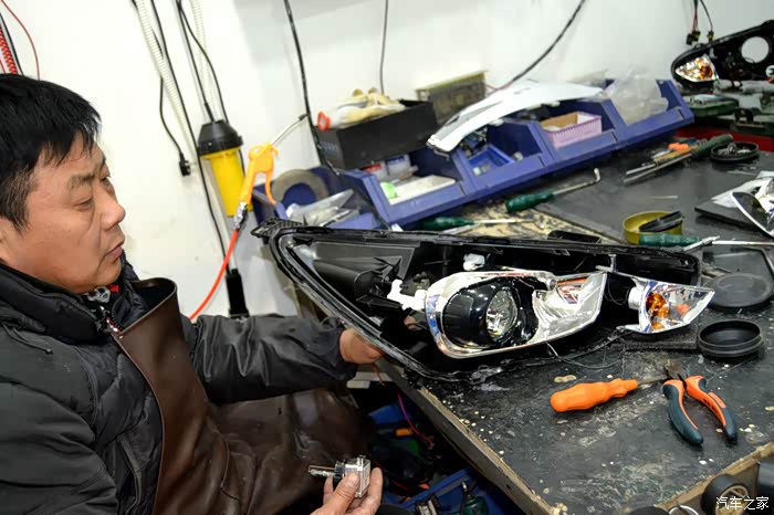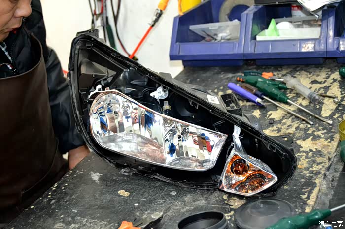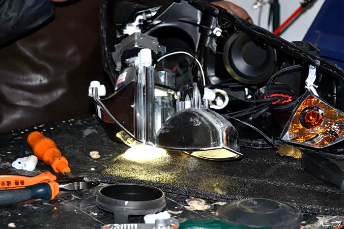 此时已经拆掉了原车的大灯