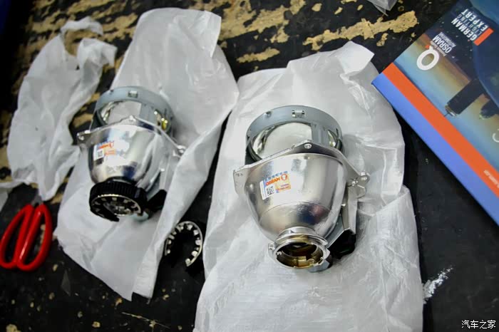 打开氙气大灯包装,里边有两个氙气灯和两个安定器