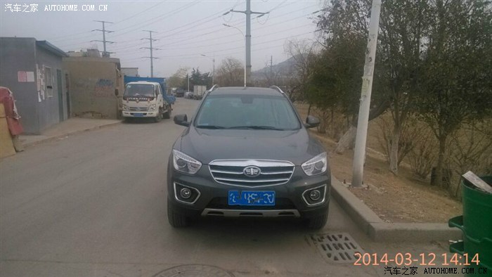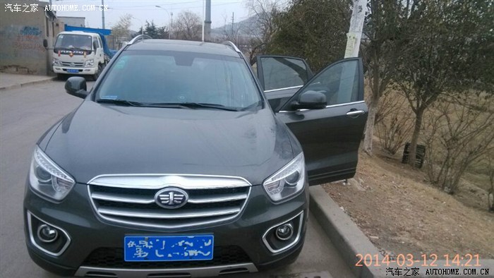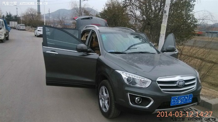 本人从小就喜欢车,刚开始喜欢摩托车(越野.公路赛),觉得很拉风很刺激,但是家里人一直不同意,坚决发对,觉得很不安全,所以慢慢的就放弃了我的摩托梦,一直到现在 在路上看到这样的摩托 心还是很痒很痒,喜欢的人懂得。本人18岁生日第2天家人就给我报了名学汽车驾照,用家人的话说:摩托是肉包铁不安全,而且风吹雨晒,汽车是铁包肉相对比较安全,风吹不着雨淋不着。好吧他们赢了。从此经常打开电脑开始看车 各种车,当时只考虑轿车三厢(日系除外)宁肯多耗几个油 也不买日系车,看过:大众的宝来,别克的凯越,标志的308,福特的福克斯....直到姐姐09年结婚 她买了一辆大众速腾,后来我就一直关注此车,决定买车就它了,可后来老妈的一句话:现在的年轻人都开SUV高端大气,坐着不憋屈,我们不要轿车....好吧 她是财务主管 只能听她的。上班的时候跟同事聊过要买车,同事介绍X80,当时看了一眼照片,没觉得怎么样,因为当时心里想买哈弗的H6,直到一个星期后再公司大院里看到一辆X80银色,哇,这车比照片漂亮多了,直接去4S试驾。本人没那么多臭毛病,挑三拣四 这不好那不好的 总是跟别的车比。这车 这价位 这配置,中上等吧。决定就它了,从此天天论坛潜水,直到13年12月觉得时机差不多了,直接出手 好不犹豫,2.0豪华 典雅灰 当天交钱14万5千8,优惠1千,14万4千8裸车提走(12月25号)出厂日期11月15号,嘿嘿 神速吧 羡慕嫉妒恨吧。从提车到现在3个月吧,跑了2千多公里,高速油耗9个,纯市区油耗13个,但愿首保后能在降降吧,外观就不用说了(实车比照片大气漂亮多了)内饰还行吧(车窗玻璃下是硬塑料,像B90那样软的就好了,玻璃贴膜后 方向盘左下银条反光)2.0动力不强不弱,市区开可以接受,飙车除外,经常跑高速建议2.3。新车异味不大,噪音适中,到现在为止除了中控台某处有点异响外 其他暂时刚刚的, 此车值得购买 不后悔 很结实。 好了就说到这吧直接上图,希望版主射精!!!!!!!!!!