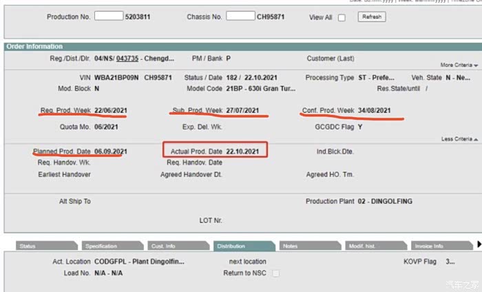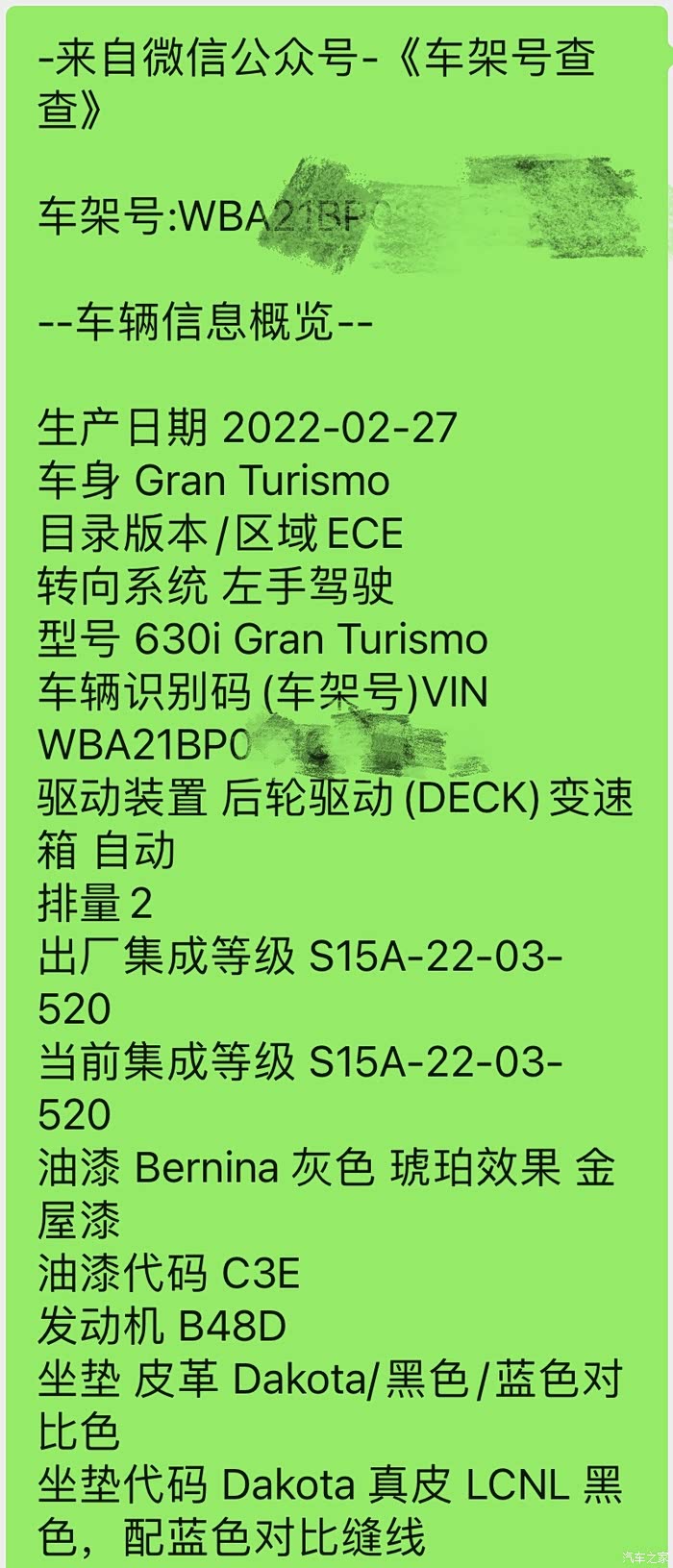 有了车架号可以看车辆信息,生产时间,配置详情,可以让论坛老哥们帮忙查。
