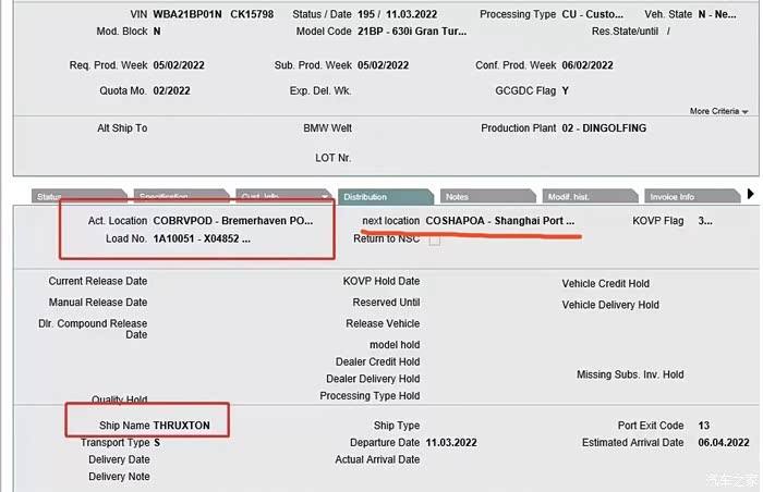 在途车:一定要拿到这张图,信息都有,车架号和船名,根据船名查到港日期