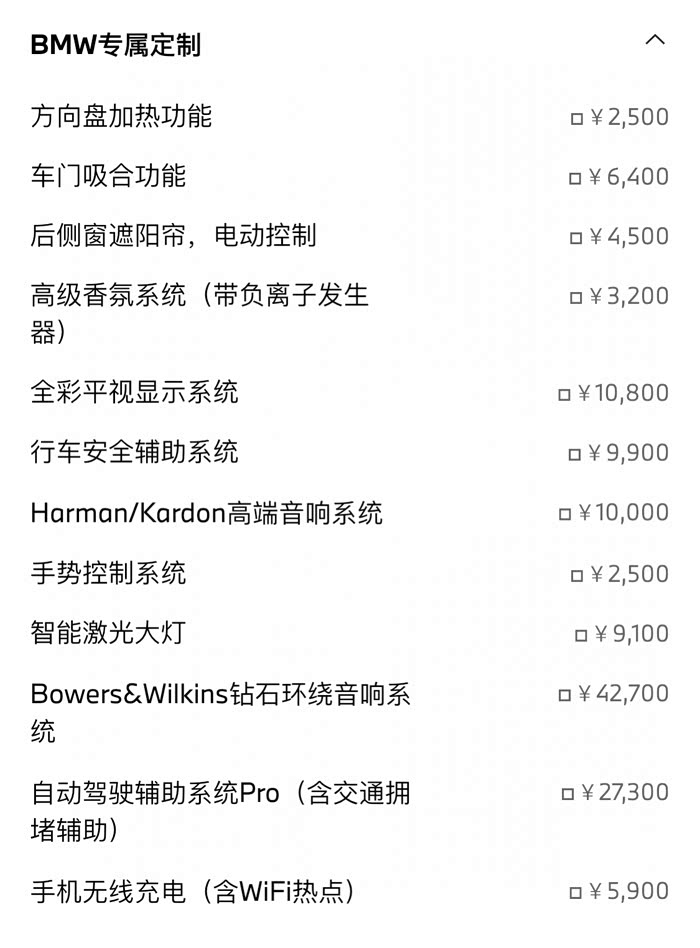 最后决定m套,现车没喜欢的颜色搭配,索性定制等期货。选了黑色蓝缝线,哑光白蜡木,加了电吸门6400,方向盘加热2500,遮阳帘4500