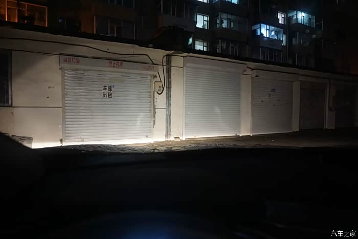 下面的是测试大灯的效果。前面的车库离车大概10米不到