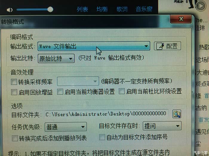 一定选择WAVE,别选最后一个,不然不能原文件转换