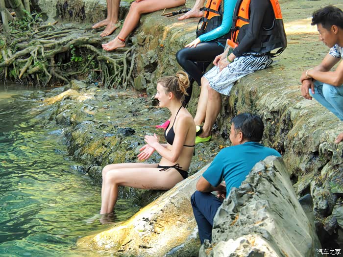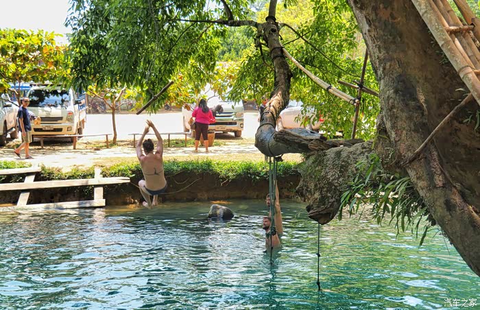 这就是我总说特别羡慕单身朋友们的原因,媳妇既然不给玩了,那就看看别人怎么玩吧。在这里玩的人十分容易区分,穿比基尼的是老外,穿救生衣的是韩国人,穿衣服的是老挝人。可能时间还早,来自中国的只有我们一家三口。