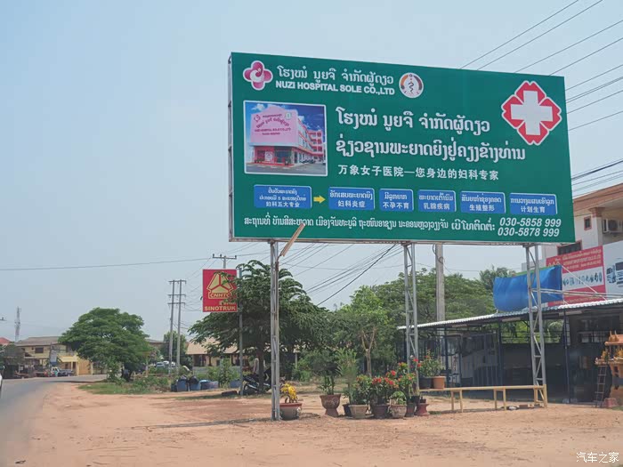 虽然遇上堵车,但是我们依然在日落前来到老挝的首都万象。进入万象时看到这张广告牌,除了熟悉的中文,还感觉哪里熟悉?在中国,无论去到哪里都可见许多不孕不育的男科医院,看来在老挝是妇科医院比较吃香。