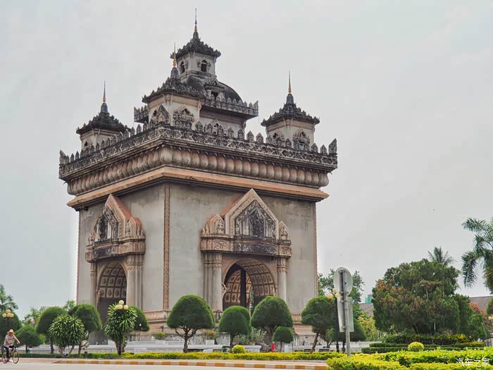 看到万象的凯旋门,就像我们也高奏着凯歌来到这个国家的首都。
