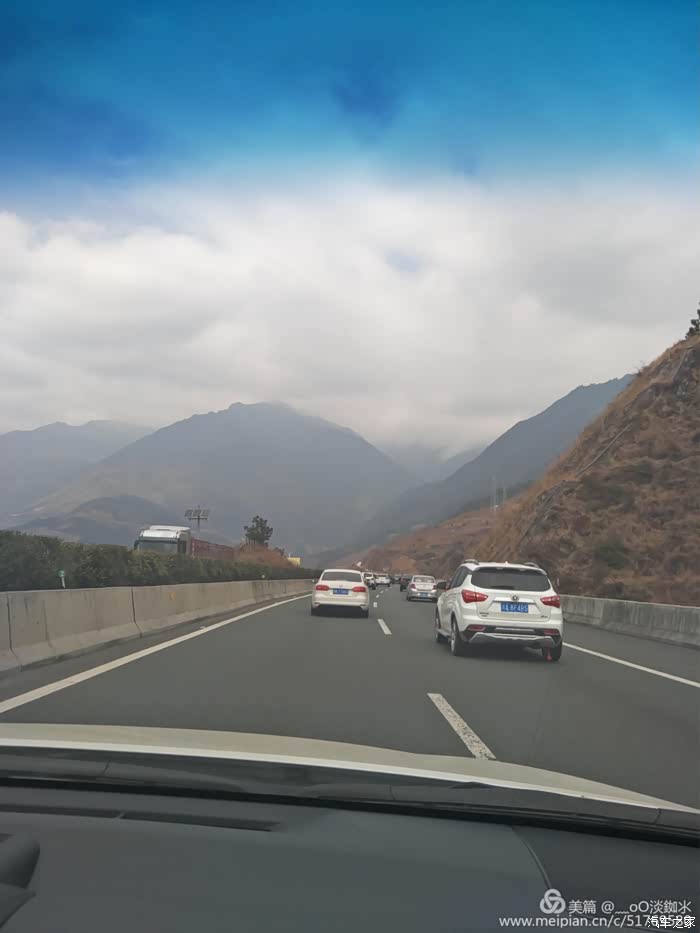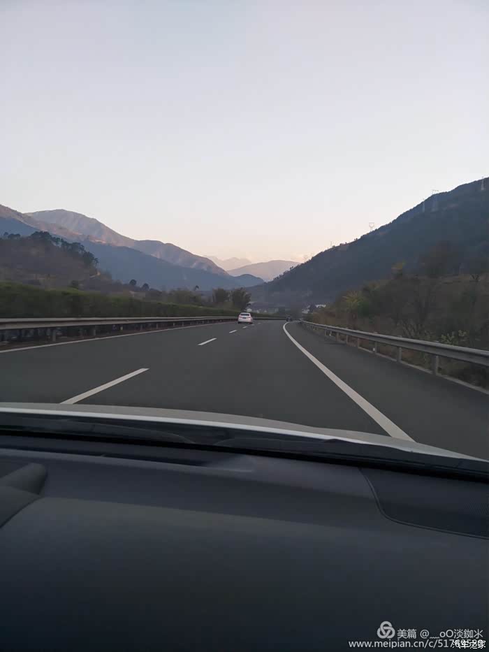 高速公路上,两边都是绵绵不断的群山。