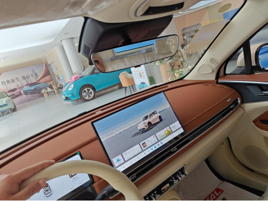 网上看不出中控屏具体多大,看车的时候一对比才发现,居然比我的iPad尺寸还大点。操作了下,流畅度没问题,车机很聪明,尤其是语音控制,开空调、车窗、导航啥的,连座椅加热和通风也能控制,很方便。