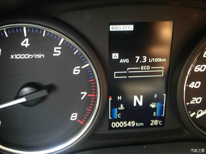 油耗不错,今天高速70%(大脚油门给的),市区20%,烂土路10%(也没有锁定四驱)油耗7.3左右!~觉得很满意了!~~~