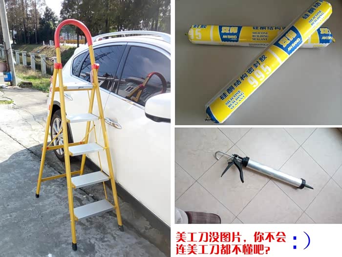 材料准备:人字梯、耐候密封胶(黑)、胶枪、美工刀。