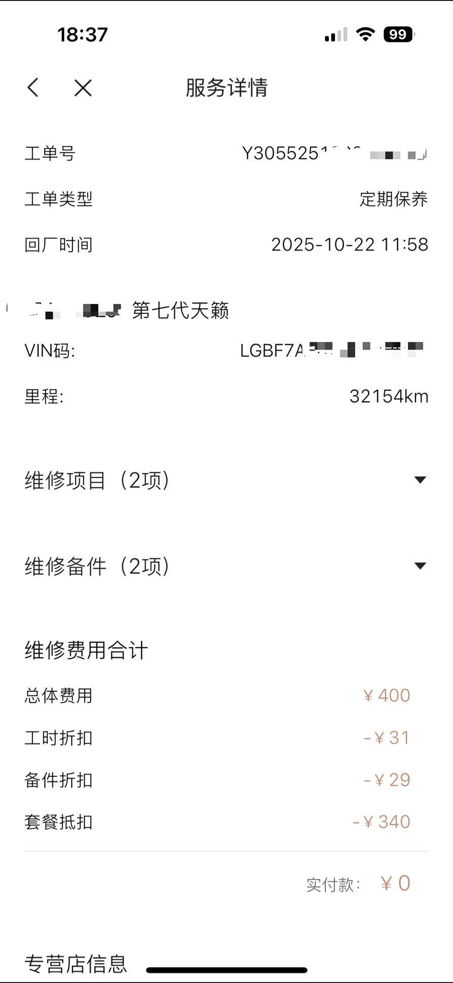开了3年的天籁车主,针对保养项目为大家几个建议。