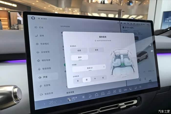 20扬声器的音响表现让我有些大跌眼镜,整体音场的环绕感较强,但听感非常模糊,仿佛隔着一层厚玻璃,低音也完全不够下潜,只有人声表现堪堪及格,这完全不像是小鹏音响应有的水平,和P7i上的丹拿更是相去甚远。
