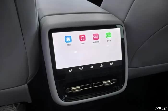 后排中央的小屏幕不仅可以调节音响和座椅,还能放视频,但用小这块屏幕看视频的体验相当糟糕,不仅位置太低,屏幕也实在太小,还不如直接做成一块只能调节空调和座椅的小屏幕。