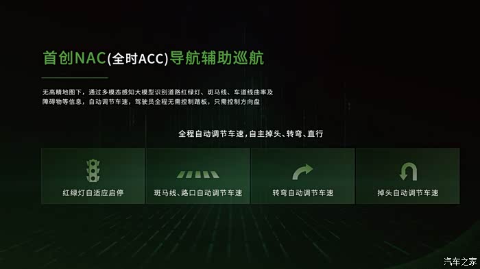 零跑C10将配备零跑独家开发的NAC辅助驾驶系统,结合了城市智能驾驶NAC+NOA高级智能驾驶的方案。在高速公路上,该系统可以实现无需人工接管的NOA高级 智能驾驶;在城市复杂路况下,则依靠全时ACC实现城市智能驾驶NAC,其智能驾驶能力介于ACC和NOA之间。
