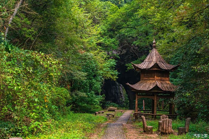 下了索道还没有达到洞府的门口,漫步茂密的树林,中间还有不少的溪流和小型瀑布,这一段路大概几百米的样子,因为有山有水有林,虽然走在崎岖的山路但是感觉很舒服。