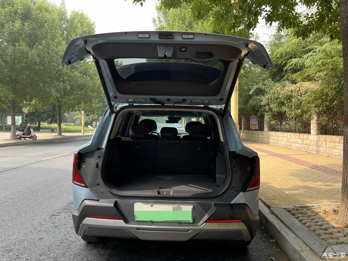 后备箱的开口挺大,容量也不小,拿放东西很轻松。