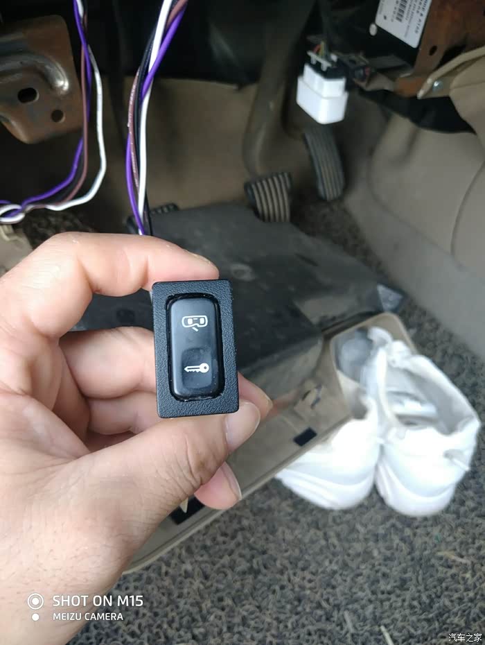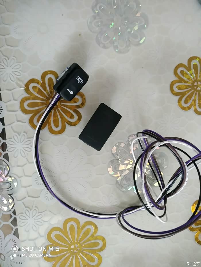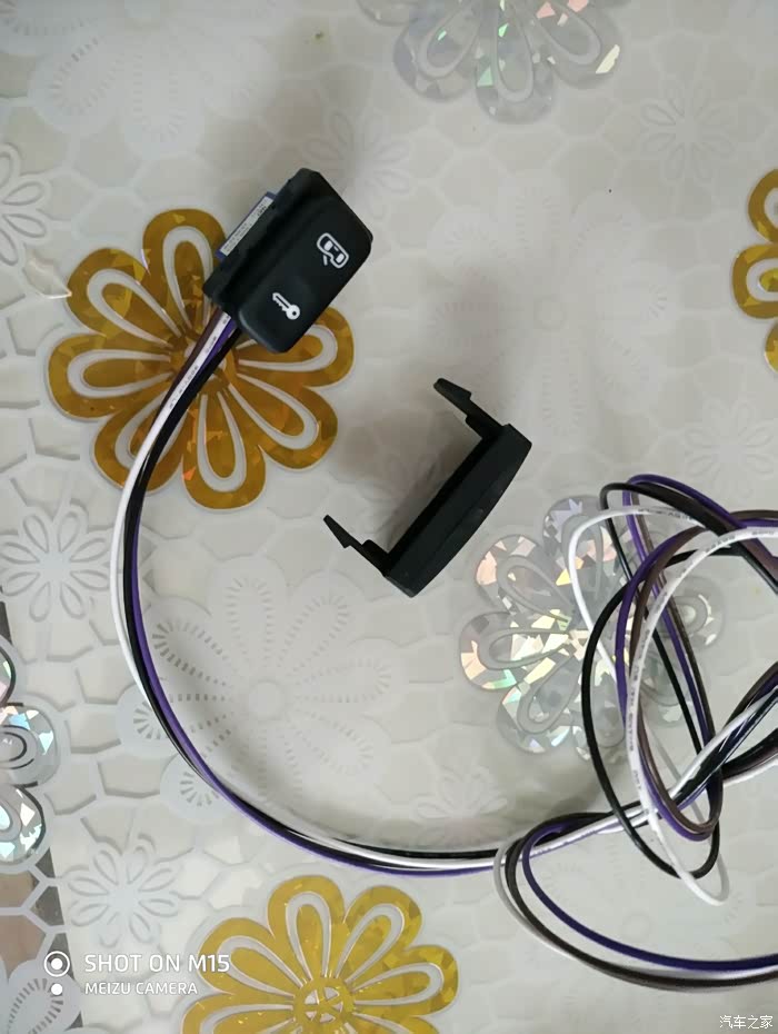 买来的中控锁按钮,光买了按钮没有要面板。面板也要几十块简直就是抢劫好不好。图中黑色的按钮是车上撬下来的。