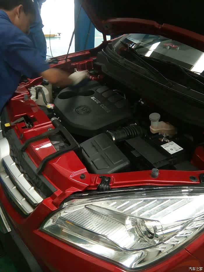2015年十月份迎来了我的第一辆车车——长安CS35,到目前为止小三表现的特别好,高速很平稳,操控也很好,就是在老家开空调动力显的有点弱,因为老家属于丘陵地带,山虽然不太高,但有的地方坡度还是有点陡,现在天气热了开着空调就显的力不从心啊!油耗吗还可以,一直保持在七个左右,几乎不在市区跑哈!做首保的时候三个月只跑了384公里,现在六个月时间到了总里程才跑了7354公里,趁着今天放假有时间就去小三的娘家把保养做了,顺便看看右前轮异响和主驾驶室车窗玻璃升降异响的问题,开了大约三十分钟左右到了小三的娘家某某4S店,今天我只做了基础保养,换机油、机油滤、吹吹空气滤和全车各项检查,下面直接上图: