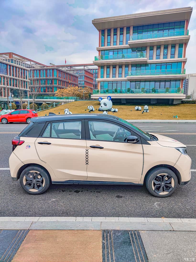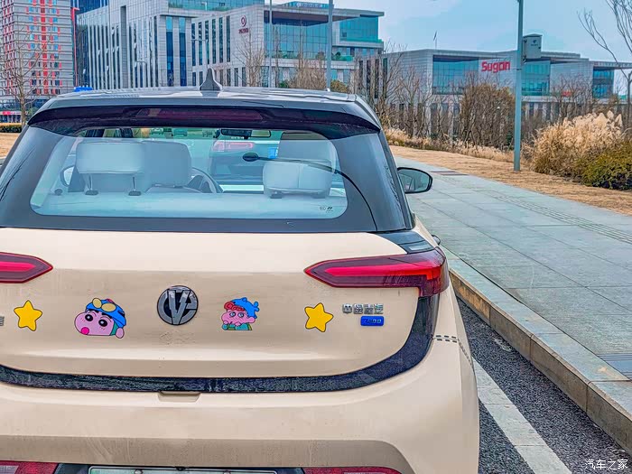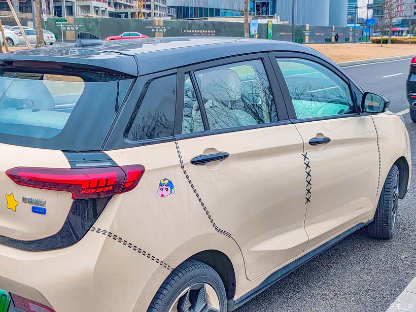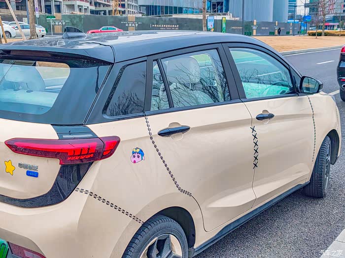 把车停在路边的停车位里,小新真的很小巧,我重新改装后的小新也是特别显眼,阳光下这种淡淡的的卡其色真的很好看!