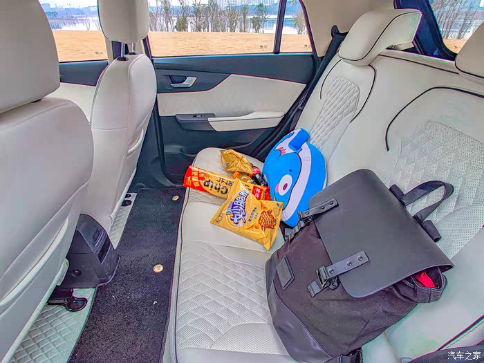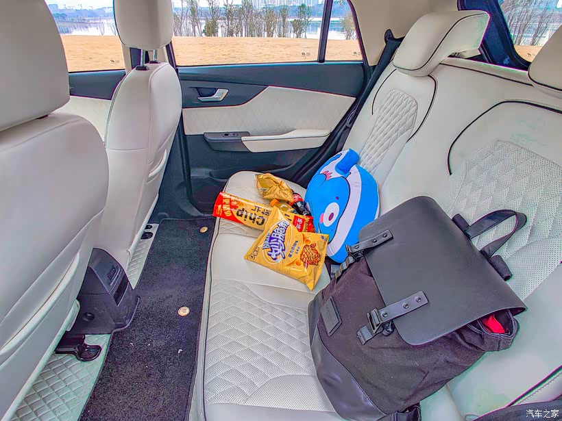 车里后座上放着我平时日常的背包,和放在这里的抱枕还有一些零食。车内的空间是真的很大,坐4个人都很轻松舒服。