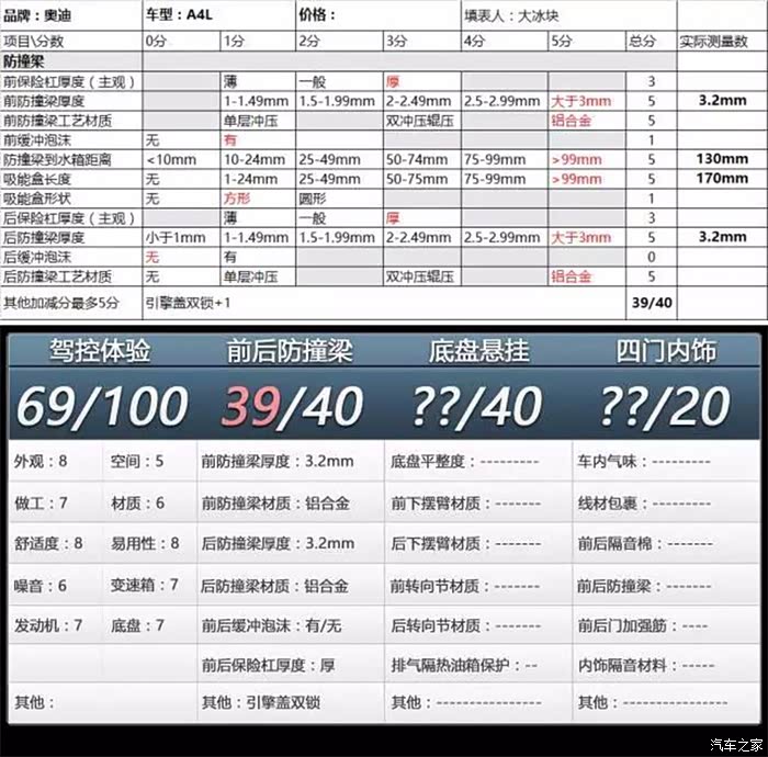 奥迪A4L防撞梁评分