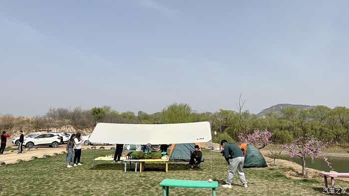 今天是个晴好的天气,河北论坛版主组织石家庄的车友们开启今年的第一次户外露营活动。前几天接到版主:叮咚与车的故事通知,想要组织车友一起到石家庄灵寿县横山岭水库那边的农家院露营活动,经过车友们的商量,定于今天(4月9日-星期日),约定好活动时间以后,大家分工准备这次活动需要的物资,有的车友负责带烧烤炉子,有的负责带上佐料,还有的带上帐篷等等···,就这样,大家按照事先定好的集合时间和地点,按照导航位置一路向北去往露营地(露营地从石家庄出发可以走高速,同时也可以走河北大道转201省道即可到达)。露营地这里设施齐全,配备大小茶几,大小桌子凳子、椅子,还配备卡拉OK设备,同时,这里还配备大小不同的烧烤炉子和自动麻将桌及麻将牌,吃饱喝足可以小玩一下,这些设备都是免费使用,不过木炭是收费的,另外这里晚上还可以入住在蒙古包内,每个蒙古包算是一个单间,可容纳一家三口入住,每晚150元,也算是比较合理的收费,到这里露营还可以自带食品饮料,也可以在他们这里点餐用餐。这个露营地就在横山湖边上,营地里有荡秋千,摇椅,以及小朋友们玩耍的游乐设施,还有各种小动物可供孩子们一起玩,总之,远离都市的喧嚣,带上家人、朋友到这里呼吸一下新鲜的山里空气,到湖边赏景聊天,都算是一种不错的选择。