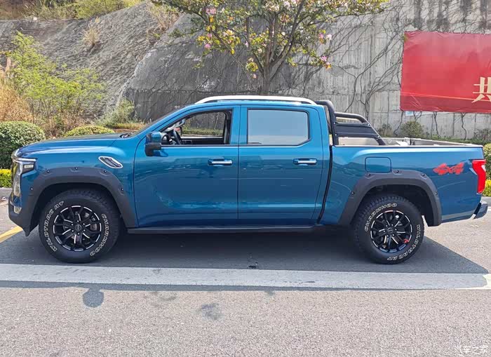 这整体造型,车身线条硬朗得很,流畅中带着十足的力量感。从车头一直延伸到车尾的主腰线,笔挺笔挺的,就跟运动员紧绷着的肌肉似的,仿佛下一秒就能爆发出惊人的力量。在太阳光照着的时候,这腰线的立体感一下子就出来了,让整车看着更有气势。再瞧瞧轮拱上方,那微微隆起的线条,活脱脱就是猛兽强壮的肩部肌肉,配上大尺寸的越野轮胎,野性和力量感直接拉满。