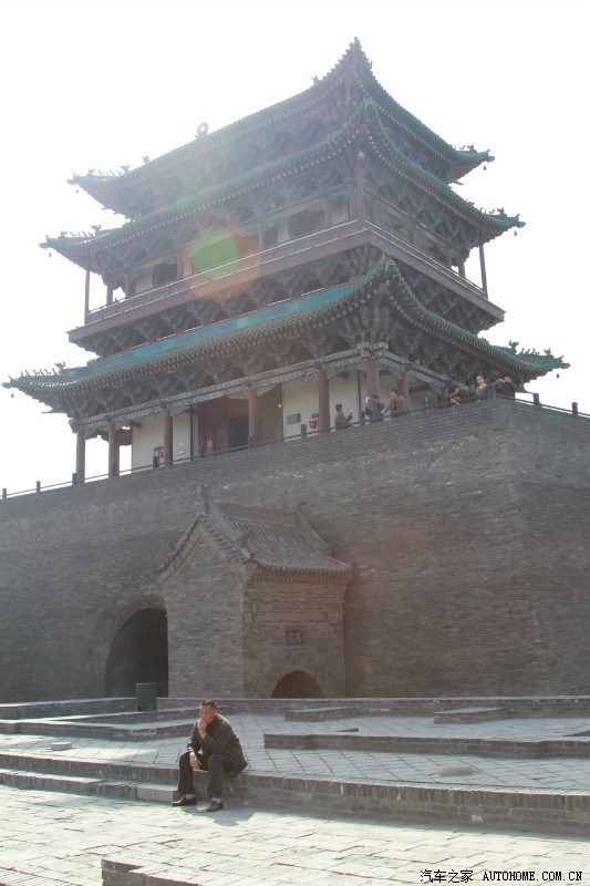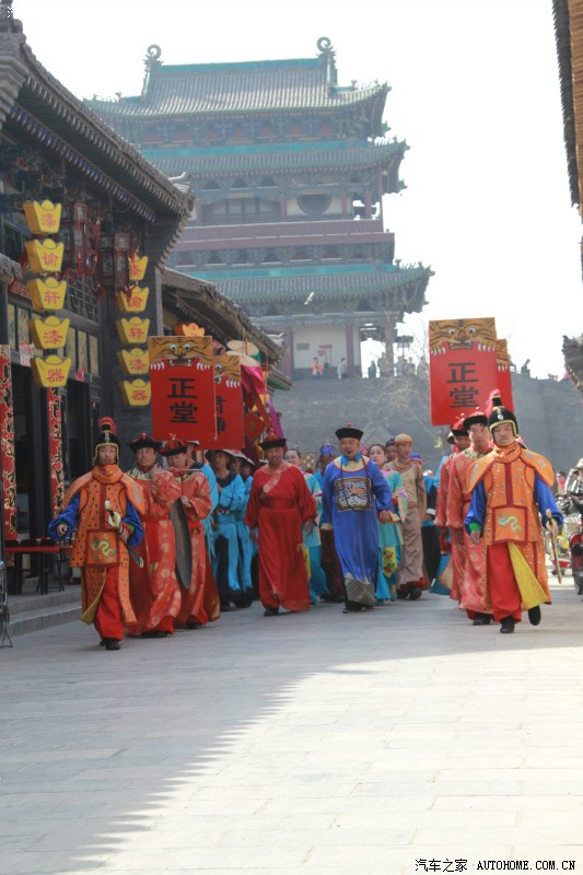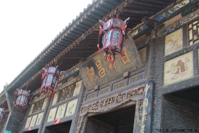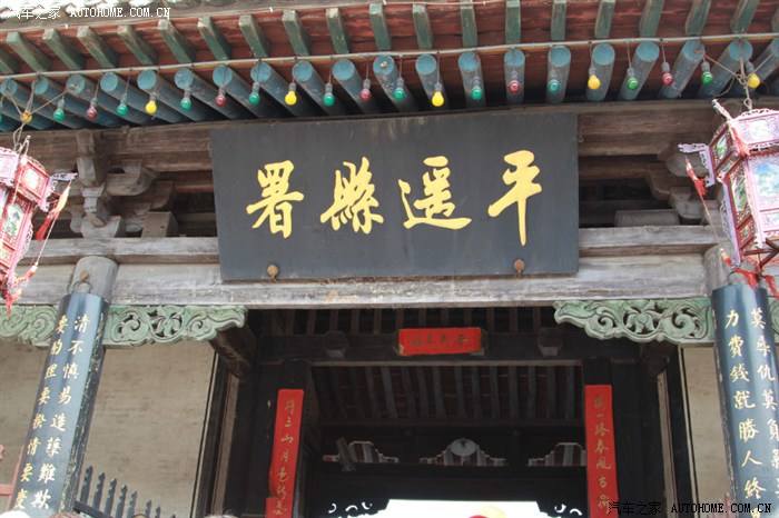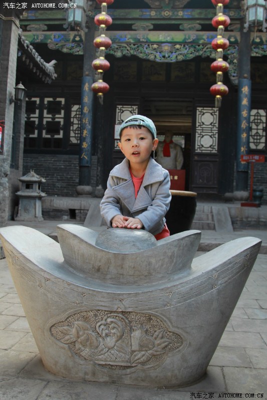 说到这里,我得承认西北的民风的确很淳朴,我问过三次路,每次都有不下三个人抢着给你指路。热情非常。就像满眼大红大绿的色彩,看的让人心里暖烘烘的。下了城楼,我们娘俩已经被骄阳烤糊了,在重复走了两条街的情况下决定再坐一次电瓶车。小孩的体力有限,还是得照顾下他的情绪。再说一上午时间还剩下两个小时啊,还要再去参观日升昌和县衙,跟电瓶车司机谈好价格,两个景点再加上送我们回住地一共20元的车费。坐上颠簸的小电瓶,就像城市里的出租车一样。走在七拐八弯的巷子里,走了大概10多分钟才到日升昌。现在回想,东西南北四条大街都是步行街,是封闭的,所有景点又都在这四条街上,为了少走路,只能坐着电瓶车在小巷子里穿梭,尽量离景点近些。这些钱,应该说是该付的,前晚的司机说的没错,他们卖的就是服务,让我们能在有限的时间里多看几个景点,少浪费点时间。是我误解他们了。我有点后悔,在时间紧迫的情况下,应该从开始逛就坐上电瓶车,那还能多看几个景点啊。