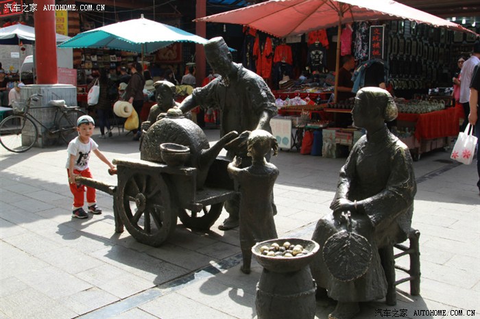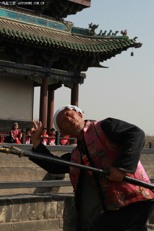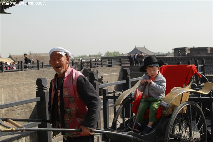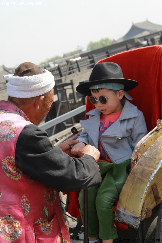 这位拉洋车的老太爷78岁了,不论男女,高矮胖瘦都能毫不费力的拉起洋车在城楼上溜一圈,能演能唱。看着他给儿子装扮上,满腔热情的拉着小孩儿转了圈,没成想小孩儿依然不给力,害怕的不敢抬头。这一圈下来,收费10元。老人热情的让我多拍几张,又唱又跳,表演的十分卖力。其实收费拍照很是应该,老人家的敬业让我非常感动。