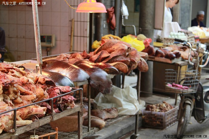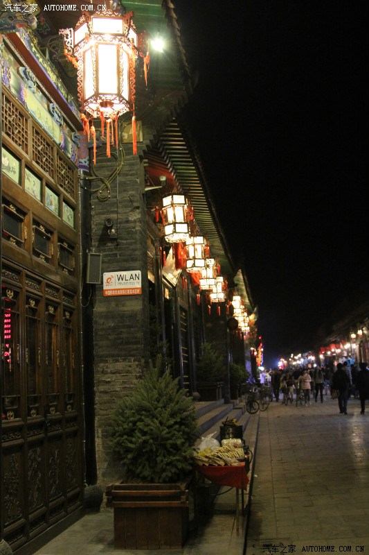 下午6点终于到达第一站目的地----平遥,历时13个小时15分钟,共计1074公里。除了兴奋,心里的一颗大石落了地。总算顺利安全的到达,尽管比预计时间稍晚一些。打开封闭的车窗,一阵热风迎面扑来!将近30度高温,让穿着冬装的我们迅速check in,迅速换成春装。这是个古城,占地2.25平方公里,和紫禁城一样大。城内居民肆万多。委实不小。网上订房在平遥会馆。新建的宾馆,所有的物品设施都是新的,还有崭新的油漆味道。所以说凡事有得必有失。收拾停当下楼来,天色初暮,彩灯初上。坐上路边的电瓶游览车5块钱把我们三人拉倒明清一条街。心里觉得别扭,感觉像是受骗了一样,只容两辆电瓶车通过的小路里,颠簸着过了5 分钟左右终于到了地方。拒绝了司机游说,决定自己走走。原来景观主要分布在东西南北四条大街上,个人没什么激动地感觉了,全中国的景区是不是都是这样?仿古街道和店铺,大红灯笼高高挂起,商铺接着商铺。这是在西塘?扬州?还是云南?夜景依然让我这么伤心。草草走着,找着传说中的元亨酒店。点了莜面栲栳栳,过油肉,炒碗秃和油糕。不得不说的是过油肉很一般,碗秃很给力,油糕很适合小朋友吃。各人口味不同,仅止于此。这里着重介绍碗秃。就是面皮用辣椒土豆丝和韭菜炒的,面皮口感很不错。西北人都善于做面食,而且都是善于酸辣口味,这对于我这个爱吃辣的北方人来说特别幸福。总算不必再像在南方吃甜食那样痛苦了.