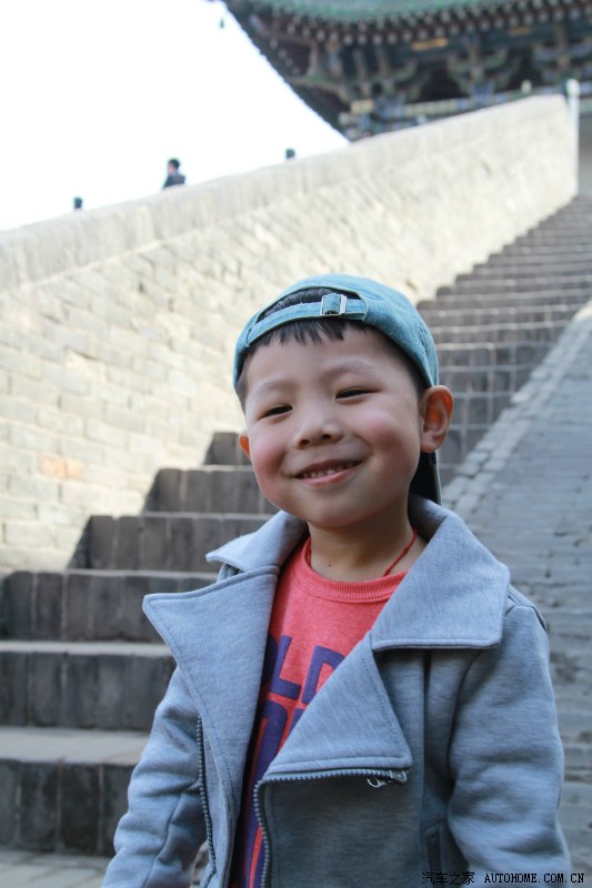 上了城楼,人越来越多,貌似都集中在南门城楼了,有校服小同学由大学生照顾着背诵着整个古城的景点介绍和历史。在南门城楼附近给小孩儿拍了几张搞笑的照片,走到人相对较少的上东门,看看古老的城墙,体会下历史留给我们的物证。这里,老公在30年前来过,30年后的今天,我们带着儿子再次站在这里,如果再过30年,这里还会是什么样子?