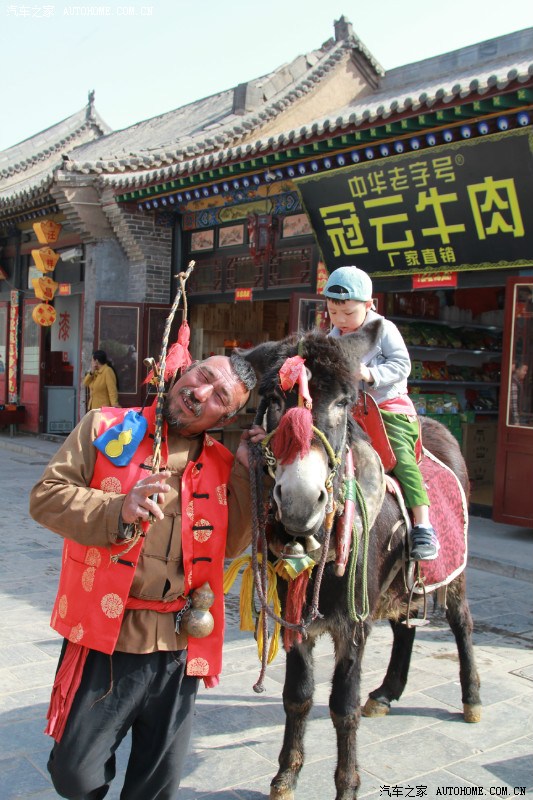 这是头名叫阿喜,脑袋上顶着宝马标志的大毛驴。坐着拍照5元。不算贵了。牵着毛驴的老大爷扯着嗓门唱着山丹丹,这位比前几位算是敬业多了。仔细看看小人儿的脸上,除了害怕的低着头,没有任何的表情。