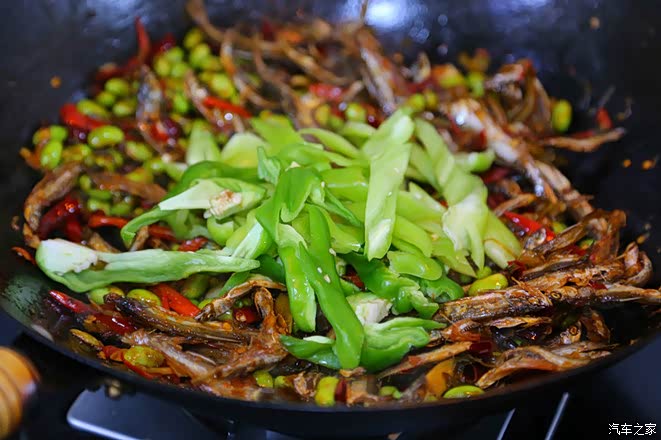 炸好的鱼干儿也丢进去快速翻炒均匀。