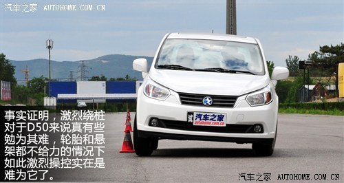 事实证明,拿启辰D50来绕桩并不是个好主意。四平八稳的转向应付最初几个桩筒还显得游刃有余,但当过软的悬架逼近极限时,它甚至无法提供让车身回弹的势能,轮胎一旦超过极限就悬架很难让车身回正,从而导致彻底失控。所以说激烈操控并不是启辰D50的擅长科目,我们也不要勉为其难了。