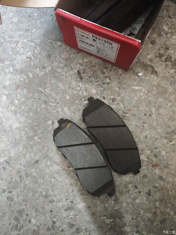 不比不知道,看一下新老片的厚度,说磨到薄如蝉翼也不算夸张了吧。再开两万看看刹车片效果吧。