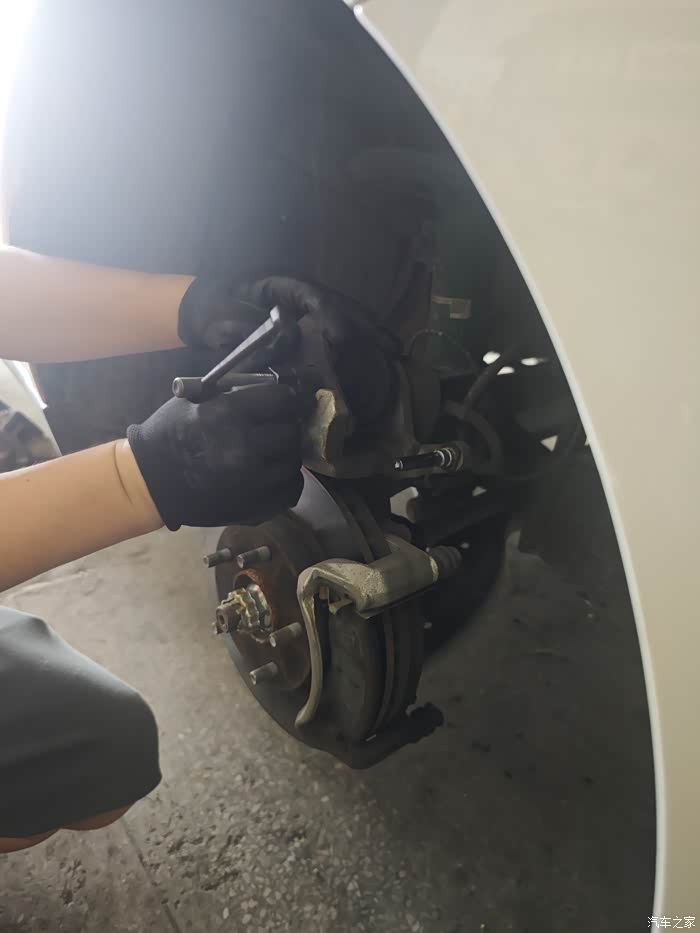 其实换刹车片也不麻烦,自己顶起来发挥一下也不是办不到。只不过自己换比较累,而且刹车片有包安装的,所以就没必要自己动手了。在现场看师傅换刹车片三两下就换上了