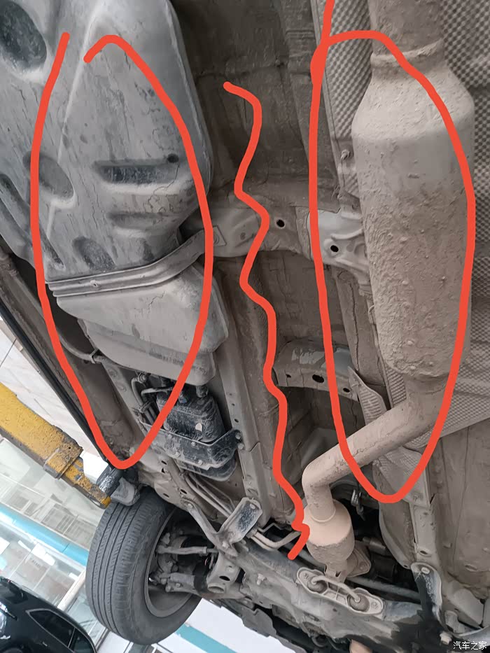 我的2025款四代cs75plus排气管卧在了的下面隆起处,之所以与上面的2022款不同应该是四代不会有四驱了,排气管可以放在了中间给传动轴的预留处,这样油箱也可以中间居中放置,这样会使车的重心更稳。排气管上面有隔热片保护十分到位。排气管中间粗一段的是“消音的”不是颗粒捕捉器,颗粒捕捉器应该有探针。第四代1.5Tcsplus不带颗粒捕捉器,也就是说此款发动机不用捕捉器就能够达到国家环保排放标准。所以大家买此款1.5t的车不用担心堵塞捕捉器。
