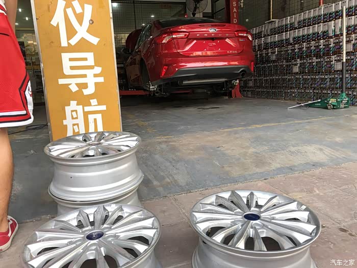 从车子出4S店到手那一刻,我就为它准备了新鞋子,也就是轮毂轮胎。原装16寸的福克斯轮毂显然不够特别,因为是195的轮胎,抓地力还达不到我的要求。因此为了提高档次和提升驾驶的乐趣,我把它改装成18寸的轮毂和225的轮胎。