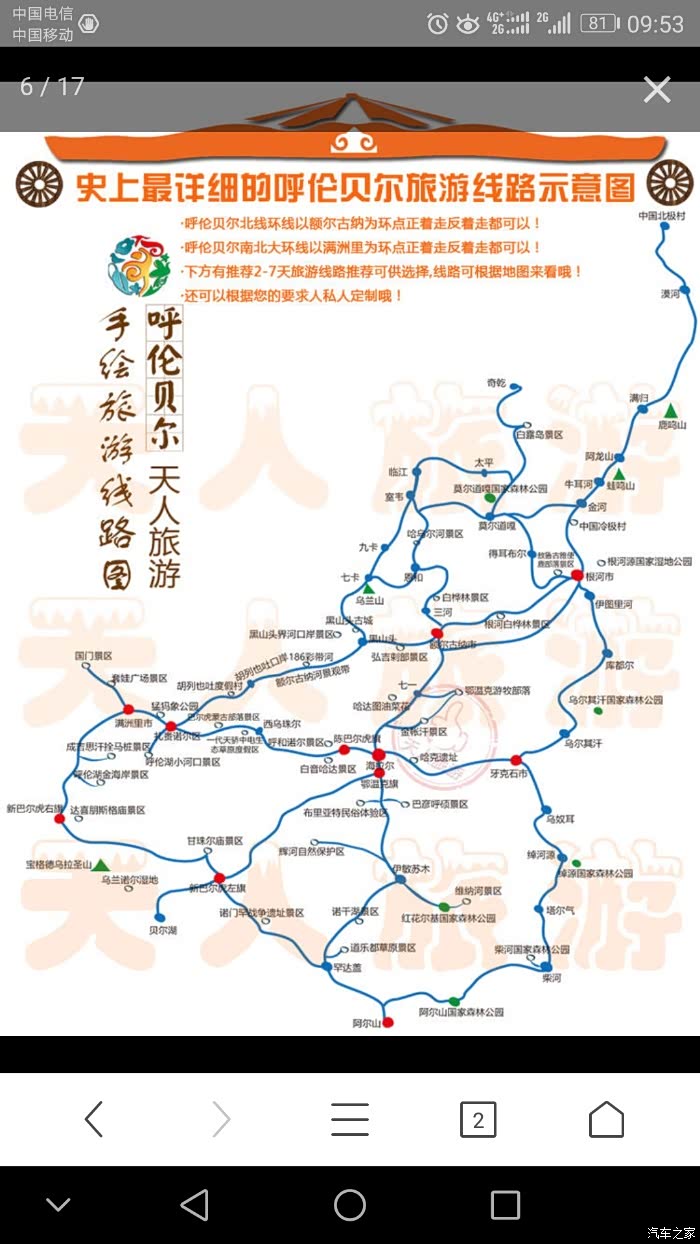 15、哈尔滨—海拉尔—室韦镇—满洲里—阿尔山,很多地方移动手机没有信号,提前下载手机导航离线地图,我手机双卡的,95%地区电信有信号,移动手机80%地区有信号。