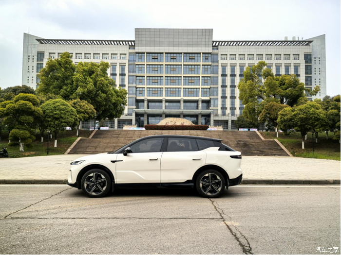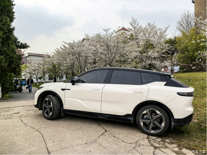 路上我老婆说,她听别人说二师樱花好看,遥想当年,是计科院旁边的宿舍那种了几株小的,但我想的是,充满回忆的计科院,赶紧去合个影。建筑与汽车永远是搭配的,岚图知音独特的外观造型与计科楼相得益彰。