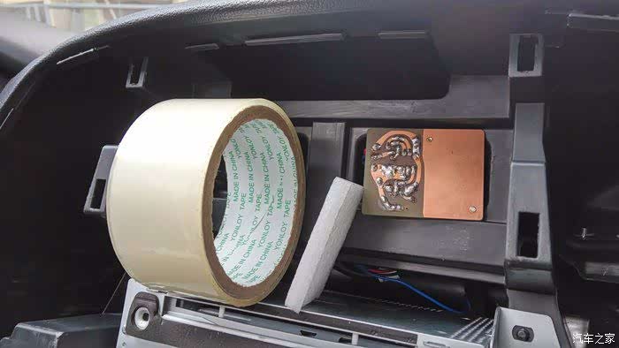 电路板制作完成后,首先找到手刹开关,它位于手扶箱/驻车制动器/挡位控制箱的护罩内,护罩由6颗螺丝固定。拆卸护罩并接手刹开关线的方法: