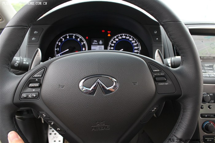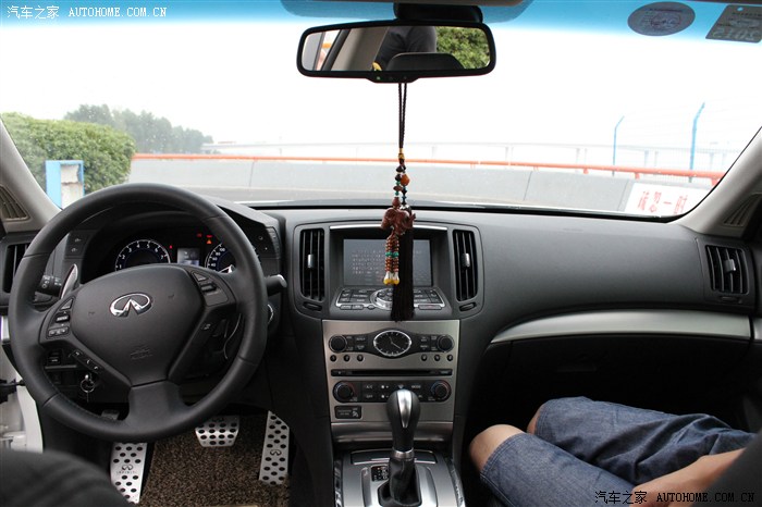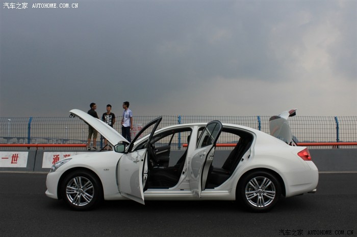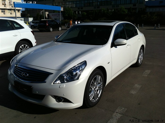 可是老妈说换个家里没有的品牌,so....待定,又去了隔壁BMW 看3系,顺便又去边上二级经销商看了AUDI A4L、mercedes-benz C级 ,ABB是好东西啊,可是太高调了,不适合我,而且在我们家那边都烂大街了,直接PASS。转了一天准备打道回府的时候老爸突然指着马路的另一边说”那是什么牌子啊?“我抬头一看:”英菲尼迪啊!”哎呀~我怎么没想到这个品牌呢!说着就和爸妈走向了infiniti 的4S,进门老妈就指着小G说”这车挺漂亮的“我一看,还真不赖诶,车头饱满给人一种典雅的感觉,就是他了!我看了一眼老爸,老爸也觉得OK,于是要求试驾,结果告知没有试驾车,要等下个星期车子调过来,失望啊!回家。一到家我就急急忙忙各种了解小G,什么后驱啊、V6啊、BOSE音响啊等等等等(之前就口水CC上面的丹拿了,